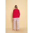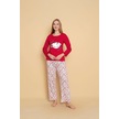 Kadın Penye Sıfır Yaka Uzun Kol Pijama Takımı Kırmızı Happy