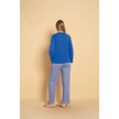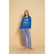 Kadın Penye Sıfır Yaka Uzun Kol Pijama Takımı Saks Mavi