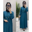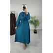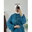 Kadın Petrol Rengi Karin Aerobin Kumaş Yarım Ön Düğmeli Püskül Bağcık Kuşaklı Tesettür Elbise Petrol
