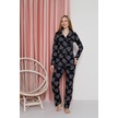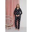 Ahengim Kadın Pijama Takımı Süprem Uzun Kollu Boydan Düğmeli Diamond Yazılı Pamuklu Mevsimlik W20622305 Lacivert