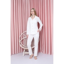 Ahengim Kadın Pijama Takımı Süprem Uzunkol İnce Çizgili Ceket Yaka Pamuklu Mevsimlik W20602299 001