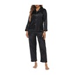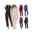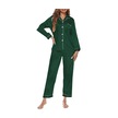 Kadın Pijama Takımı Uzun Kollu Çentikli Yaka Düğmeli Yumuşak Saten Pijama - Koyu Yeşil