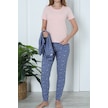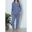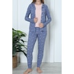 Kadın Pijama Uzun Kollu Düğmeli Pijama Takımı Cepli Pamuk 3 Lü Takım Kısa Kollu Indıgo İndigo