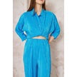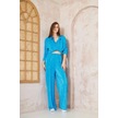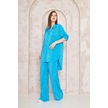 Kadın Pliseli Beli Lastikli Pantolon Tunik Gömlek Ikili Bürümcük Salaş Takım 3573300 Mavi