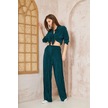 Kadın Pliseli Beli Lastikli Pantolon Tunik Gömlek Ikili Bürümcük Salaş Takım 3573300 Petrol