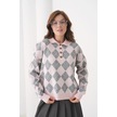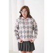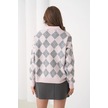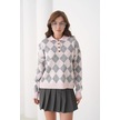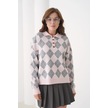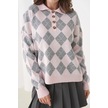 Kadın Polo Yaka Yarım Pat Düğme Detay Desenli Oversize Triko Kazak Açık Pembe
