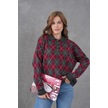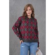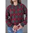 Kadın Polo Yaka Yarım Pat Düğme Detay Desenli Oversize Triko Kazak Antrasit