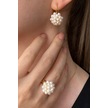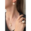 Kadın Prenses Model Doğal İnci Küpe Kolye Yüzük Üçlü Set 9 / Sarı Gümüş