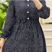 Kadın Puantiyeli Lacivert Renk Viskon Kumaş Ön Düğmeli Ayarlanabilir Kuşaklı Tesettür Elbise Lacivert