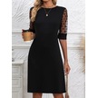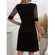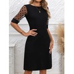 Kadın Puantiyeli Tül Kollu Bisiklet Yaka Janjan Krep Elbise Siyah