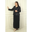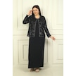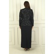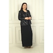 Kadın Pul İşlemeli Boncuk Detaylı Tül Ceket Yarım Ay Kollu Uzun Elbise Astarlı Krep Büyük Beden 2'li Takım Siyah