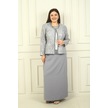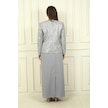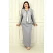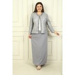 Kadın Pulpayet Ceket Yarım Ay Kollu Bluz Astarlı Krep Uzun Etek Büyük Beden 3'lü Takım Gri