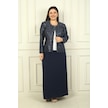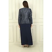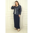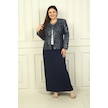 Kadın Pulpayet Ceket Yarım Ay Kollu Bluz Astarlı Krep Uzun Etek Büyük Beden 3'lü Takım Lacivert