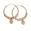 Kadın Renkli Boncuk Ve Kalp Detay Çelik Halka Model Küpe Gold