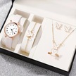 Kadın Saat Ve Bileklik+kolye+küpe+yüzük Seti 6 Parça Altın - Beyaz