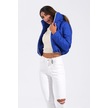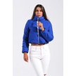 Kadın Saks Mavi Sırtı Taş Baskılı Dik Yaka Kısa Şişme Mont-saks Mavi Saks Mavi