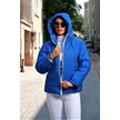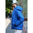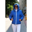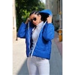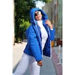 Kadın Saks Mavi Su Geçirmez Kapüşonlu Şişme Mont