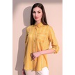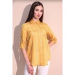 Kadın Sarı Uzun Kol Özel Kumaş Tek Cep Gömlek Dik Çizgili Arkası Uzun Basic Kesim Gömlek Sarı