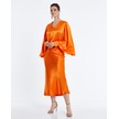 Kadın Saten Görünümlü Bluz Geniş Kol Detaylı Ve Zarif Tasarım Orange