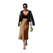 Kadın Saten Kalça Balık Etek Koyu Kahverengi