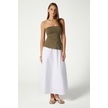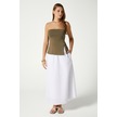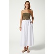 Kadın Seaside Beyaz Astarlı Bel Lastikli Cepli Dokuma Uzun Etek Beyaz
