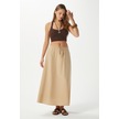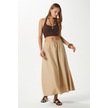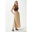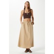 Kadın Seaside Vizon Astarlı Bel Lastikli Cepli Dokuma Uzun Etek Vizon