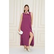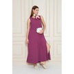 Kadın Sıfır Kol Aerobin Kumaş A Kesim Yırtmaçlı Maxi Yazlık Elbise 3760330 Mor