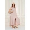 Kadın Sıfır Kol Aerobin Kumaş A Kesim Yırtmaçlı Maxi Yazlık Elbise 3760330 Pudra