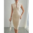 Kadın Sıfır Kol Derin V Yakalı Ithal Krep Elbise Çok Renkli