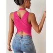 Kadın Sıfır Kol Sırt Çapraz Detay Triko Bluz Pembe