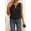 Kadın Sıfır Kollu Düğmeli Damla Yaka Detaylı Triko Bluz Siyah