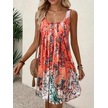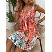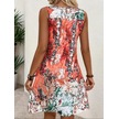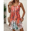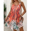Kadın Sıfır Kollu Kare Yaka Önden Pileli Salaş Süprem Elbise Desenli