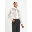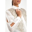 Kadın Şifon Gömlek - Zarif Boncuk İşlemeli Ekru