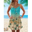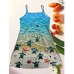 Kadın Şık Plaj Temalı Kolsuz Plaj Elbisesi Mavi