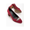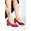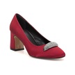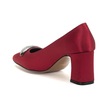 Kadın Siletto Topuklu Ayakkabı Bordo Saten Taşlı Kalın Topuklu-4169 Bordo