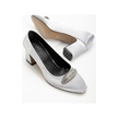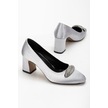 Kadın Siletto Topuklu Ayakkabı Gümüş Saten Taşlı Kalın Topuklu-4168 GUMUS
