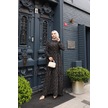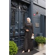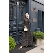 Kadın Siyah %100 Viskon Pamuklu Belden Bağlamalı Çiçek Desen Kat Kat Elbise V9539 Siyah