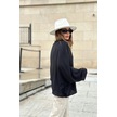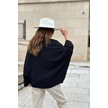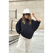 Kadın Siyah Airobin Yarasa Duble Kol Salaş Bluz Ekstra Oversize Yuvarlak Yaka - Tesettüre Uygun Siyah