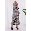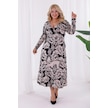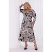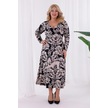 Kadın Siyah Bej Etnik Desen Kruvaze Yaka Büyük Beden Esnek Maxi Elbise Siyah - Sarı