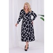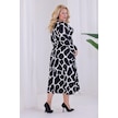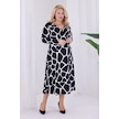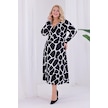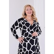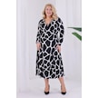 Kadın Siyah Beyaz Taş Desen Kruvaze Yaka Büyük Beden Esnek Maxi Elbise Siyah