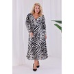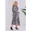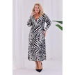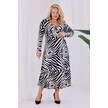 Kadın Siyah Beyaz Zebra Desen Kruvaze Yaka Büyük Beden Esnek Maxi Elbise Siyah - Beyaz