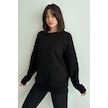 Kadın Siyah Bisiklet Yaka Oversize Sweatshirt Siyah
