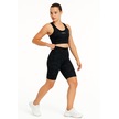 Kadın Siyah Crop Şort Kamuflaj Desenli Takım Baskı Detaylı B2089-d742-1 Siyah - Kamuflaj