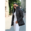 Kadın Siyah Dik Yaka Su Geçirmez Uzun Şişme Mont