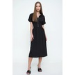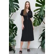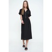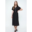 Kadın Siyah Fermuarlı Beli Büzgülü Airobin Polo Yaka Elbise Maksi Boy Uzun Rahat Ve Günlük Siyah