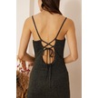 Kadın Siyah Gold Simli Sırt Dekolteli Mini Elbise Dm1036 Siyah