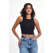 Kadın Siyah-gri-beyaz-lacivert Fitilli Görünümlü Askılı Kalın Esnek Örme 4'lü Basic Crop Atlet Bluz
