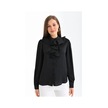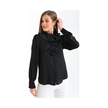 Kadın Siyah Hafif Dökümlü Volanlı Yaka Saten Gömlek 001