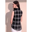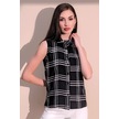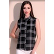 Kadın Siyah Kaliteli Üretim Kare Desen Ekose Kolsuz Gömlek Siyah