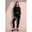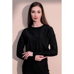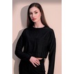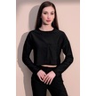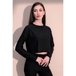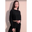 Kadın Siyah Kendinden Dokulu Cepli Crop Sweatshirt, Salaş Kesim Siyah